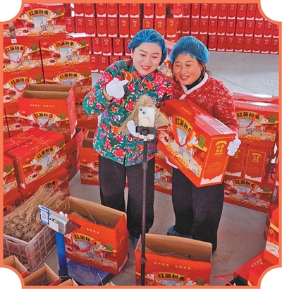 河南省新乡市原阳县路寨乡李庄村村民在电商平台直播带货。 |