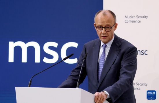 2月13日,在德国慕尼黑,德国总理默茨在第62届慕尼黑安全会议(慕安会)开幕式上致辞。新华社记者 李颖 摄