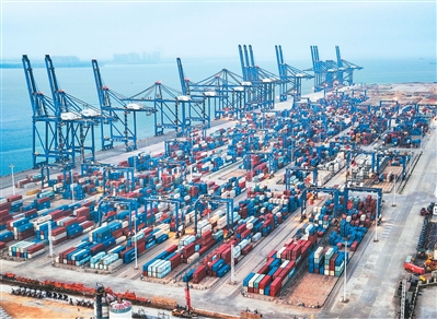 从2025年12月18日封关至2026年3月23日,近百天时间,海南洋浦港港口集装箱吞吐量达101.04万标箱,同比增长101.5%,外贸集装箱吞吐量超38.43万标箱,交出亮眼“成绩单”。图为洋浦港集装箱码头,港区集装箱堆放整齐,作业规范,秩序井然。 |