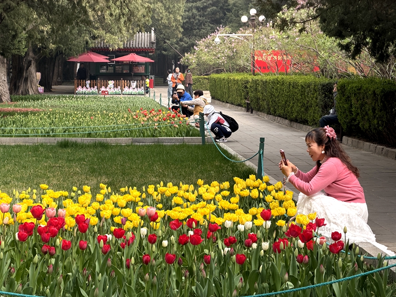 人民网北京4月3日电 (记者池梦蕊)春风送暖,繁花初绽,中山公园第31届春花·郁金香文化节正持续升温,备受期待的文创市集也同步启新迎客。