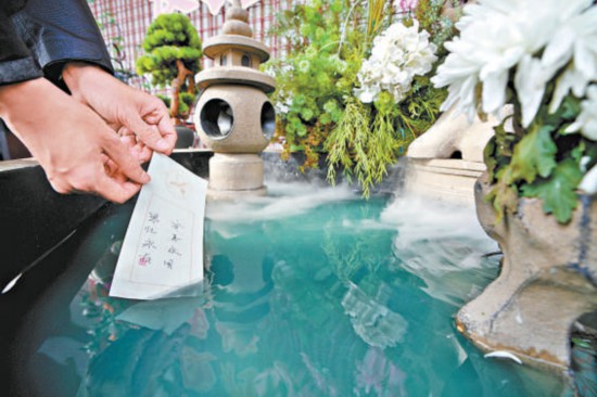 在祈福亭,人们在卡片上写下寄语,为亲人祈福;在家书亭,人们在信纸上写下思念,用无烟环保的方式寄托哀思;在花事亭,在花艺师的指导下,人们亲手为逝者制作一束鲜花;在茶香亭,人们泡一杯清茶敬献逝者,或在这里休息品茗,共话家风。