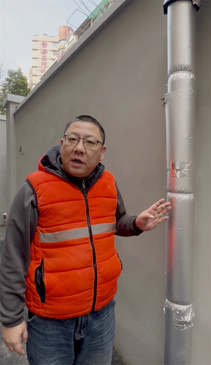 包裹着银色防冻保温的喷淋管道,在老楼的墙面上画出新纹路,像一道新生的脉搏。它一声不吭,却比任何年货都让老人心里踏实。“装了喷淋以后,晚上睡觉有安全感了。”居民刘伯乐呵呵说道。