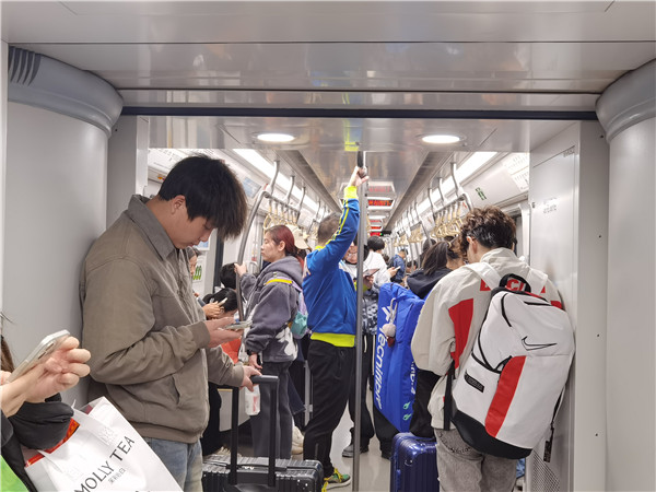 地铁车厢内。人民网记者 龚莎摄