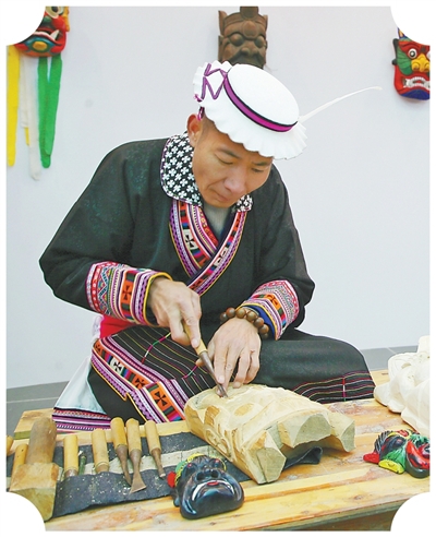 田虎塔在制作曹盖面具。 |
